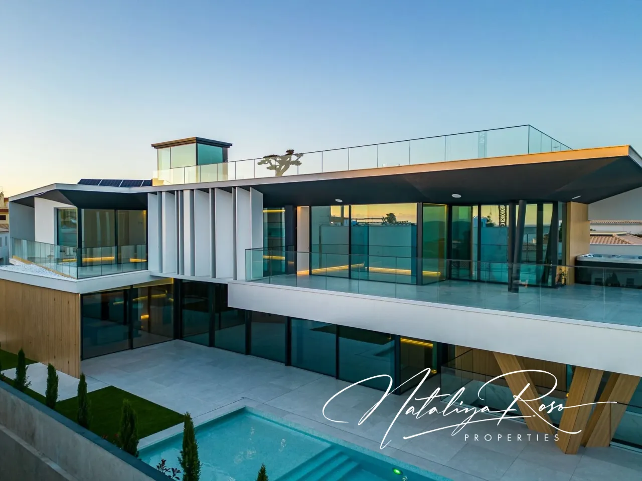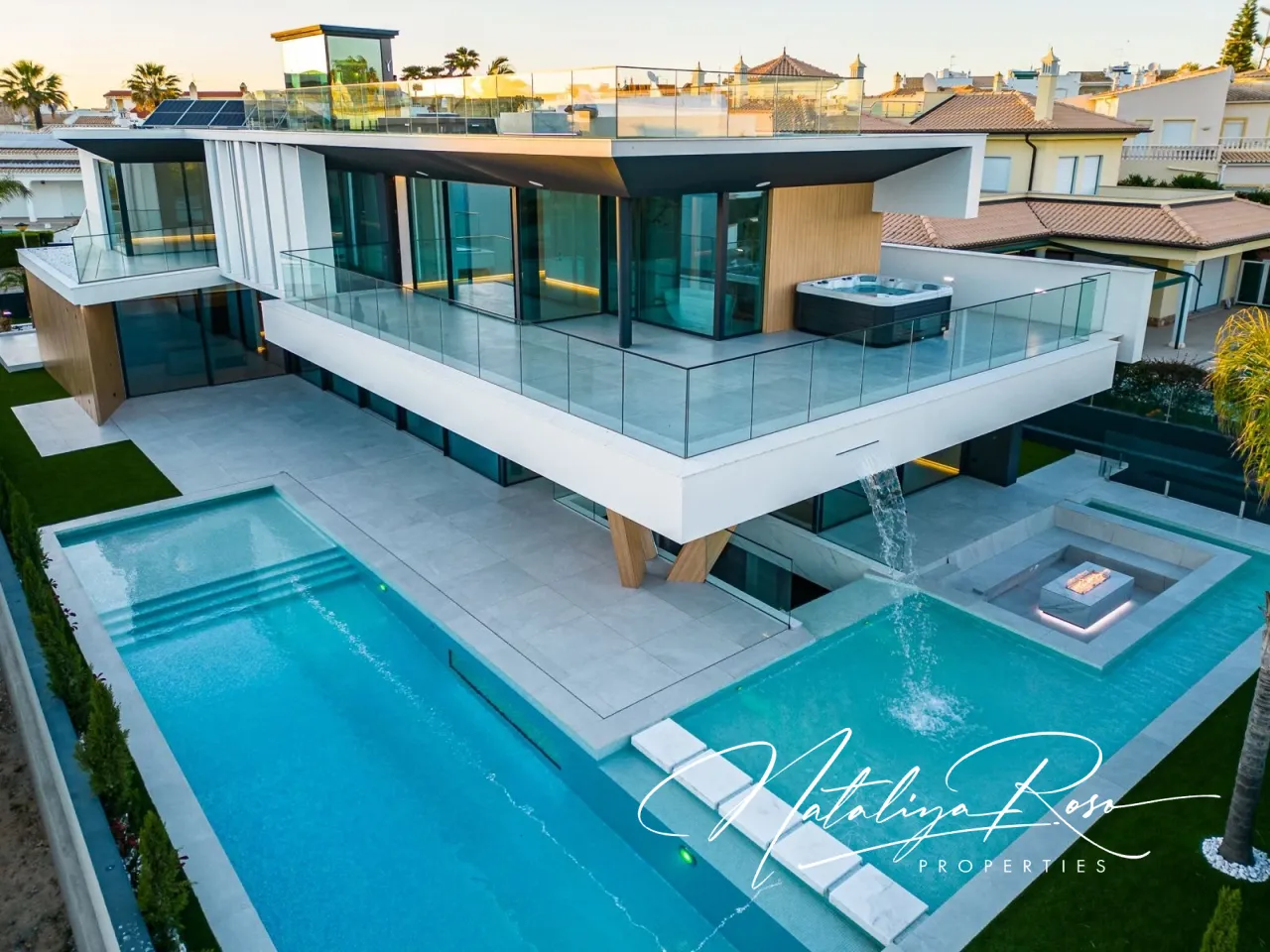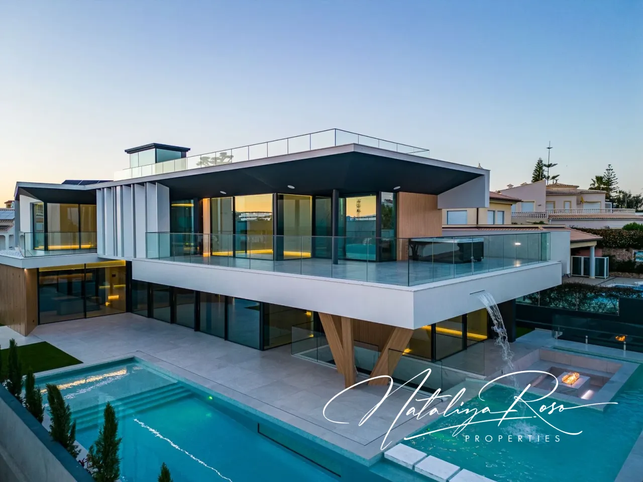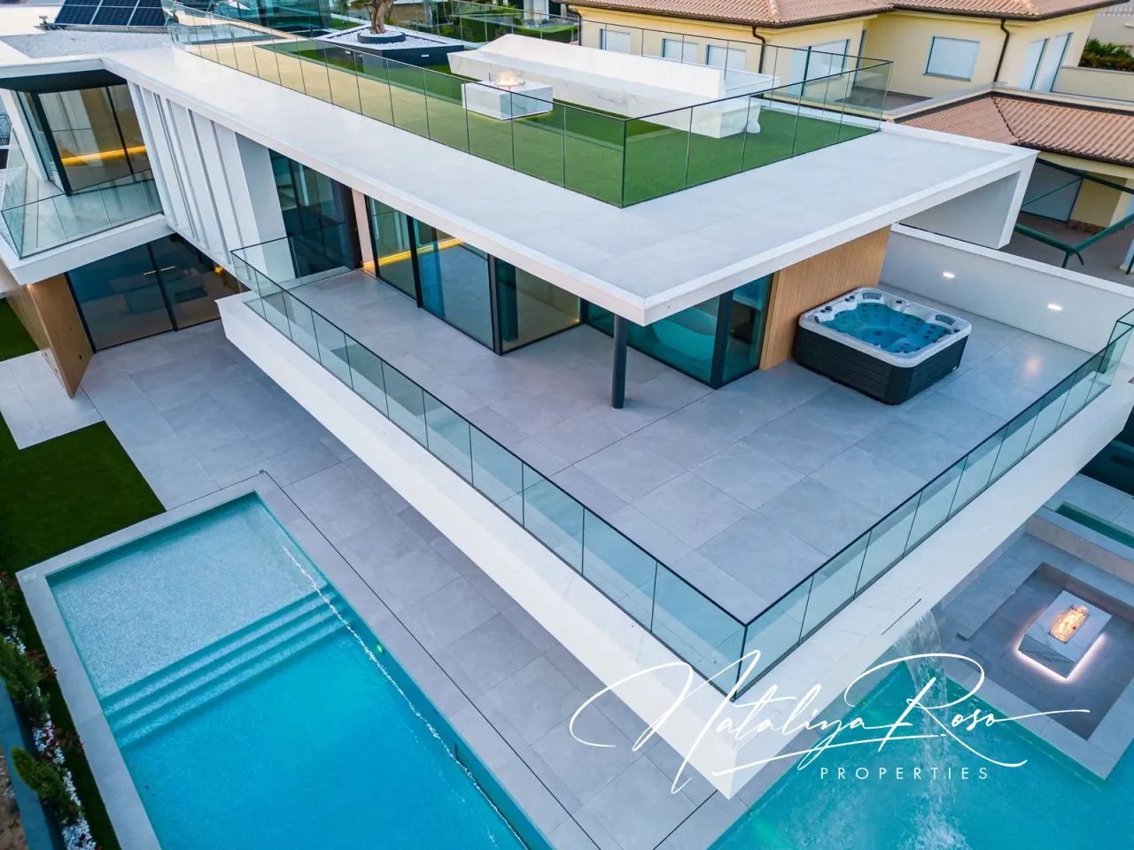 Luxury property with 770m2 of area, set on a 900m2 plot, oriented towards the highest standards of quality and excellence, with a fantastic sea view. <br>Located in an exclusive, central area of the Algarve, less than 300m from the most beautiful beaches in the region, this property stands out for its contemporary and sophisticated design, catering to the most discerning tastes.From the entrance hall, you can access the first floor via stairs or a panoramic elevator, where you will find the remaining 3 en-suite bedrooms (all with access to private terraces), with the master bedroom also benefiting from a spacious closet and a jacuzzi on the terrace.On the rooftop terrace, also accessible via elevator, there is a lounge area with a Pit-Fire, perfect for enjoying mild days and beautiful views, and in the basement, there is a large garage for multiple vehicles and additional space that can be transformed into a spa, gym, home cinema, or game room. <br>Outside, you can enjoy a pleasant surrounding garden, a large heated swimming pool (with electric cover) featuring waterfalls and a water mirror with a lounge area and Pit-Fire.Additionally, this property includes photovoltaic panels, central air conditioning, underfloor heating, a central vacuum system, a home automation system, an alarm system and CCTV, a sound system in the outdoor lounge areas, and pre-installation for electric vehicle charging stations.